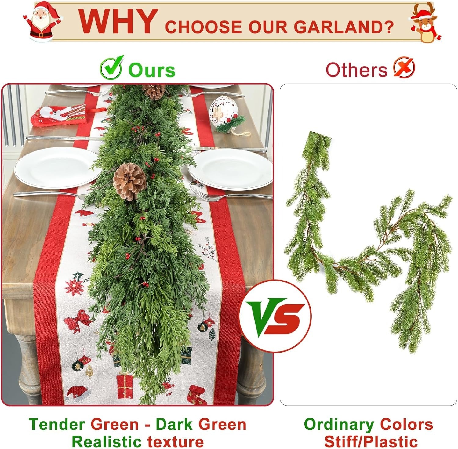 2 Pcs 6FT Real Touch Christmas Garland - Lifelike Cedar Garland for Indoor/Outdoor Decor